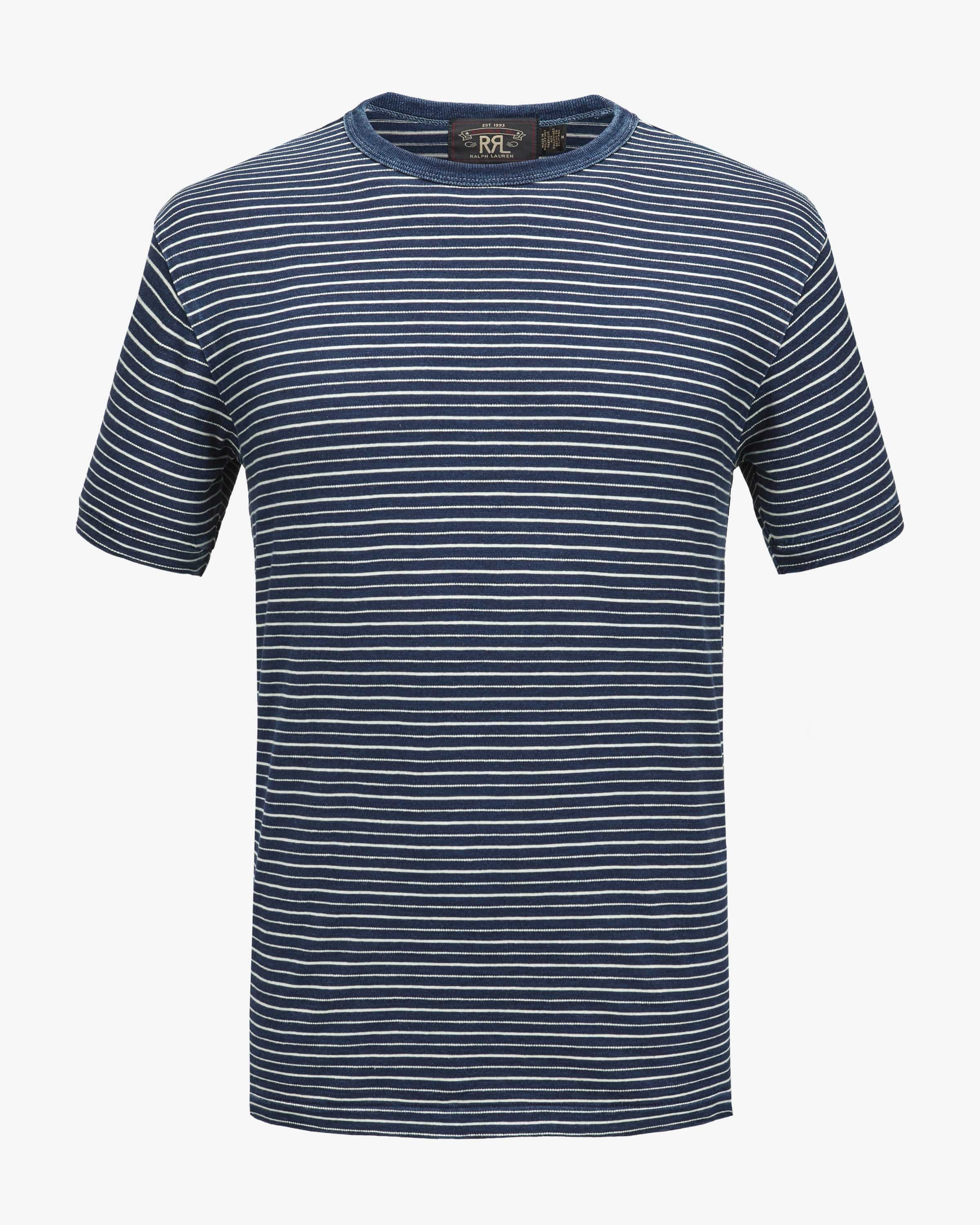 T-Shirt für Herren von RRL in Marine und Weiß. RRL ist die Heritage-Linie von Ralph Lauren, inspiriert von Americana, Workwear & Western – rugged & authentisch. Das Modell besticht dank leichter Baumwoll-Qualität mit angenehmem Tragegefühl, während das Streifen-Muster einen maritimen Charakter verleiht.