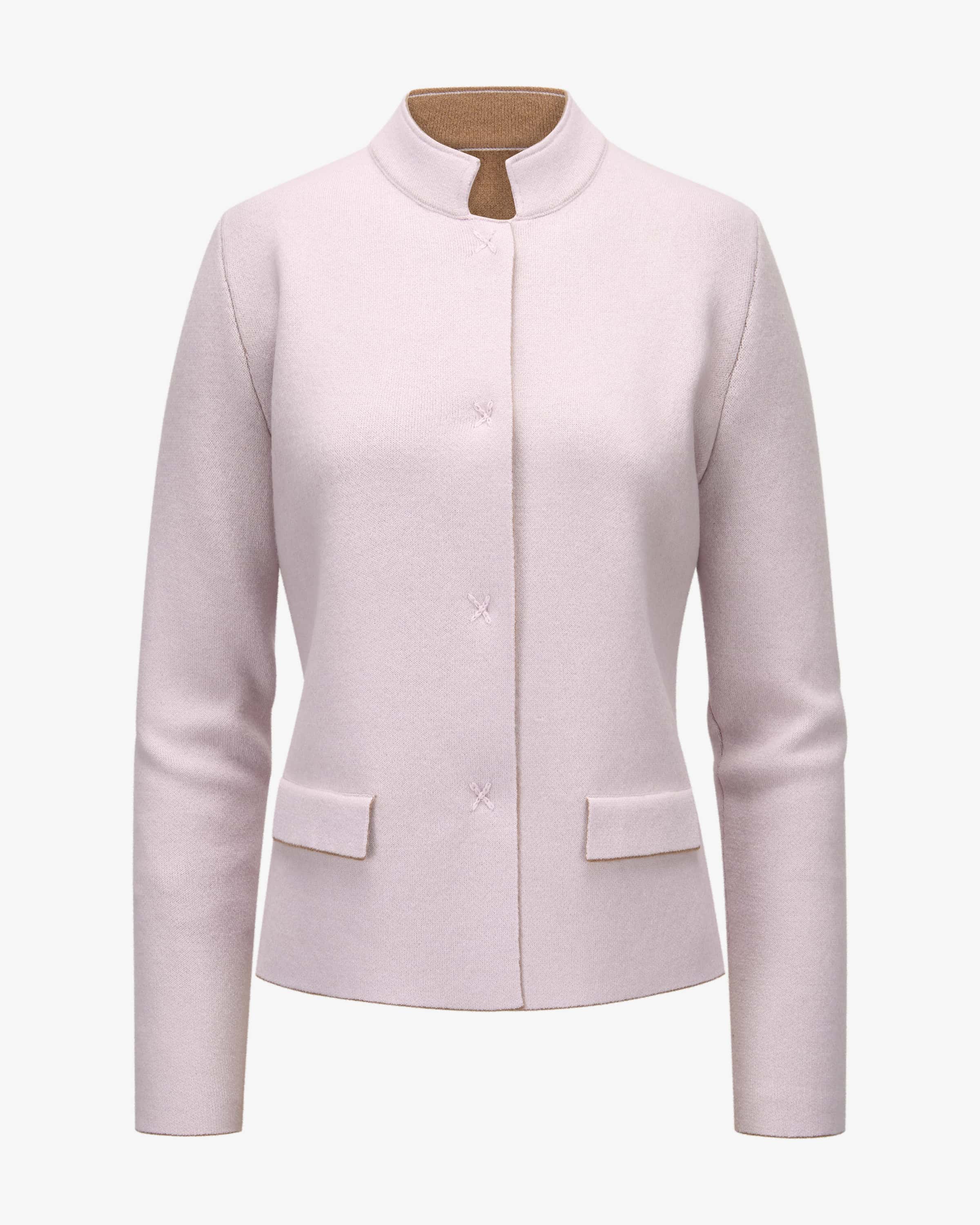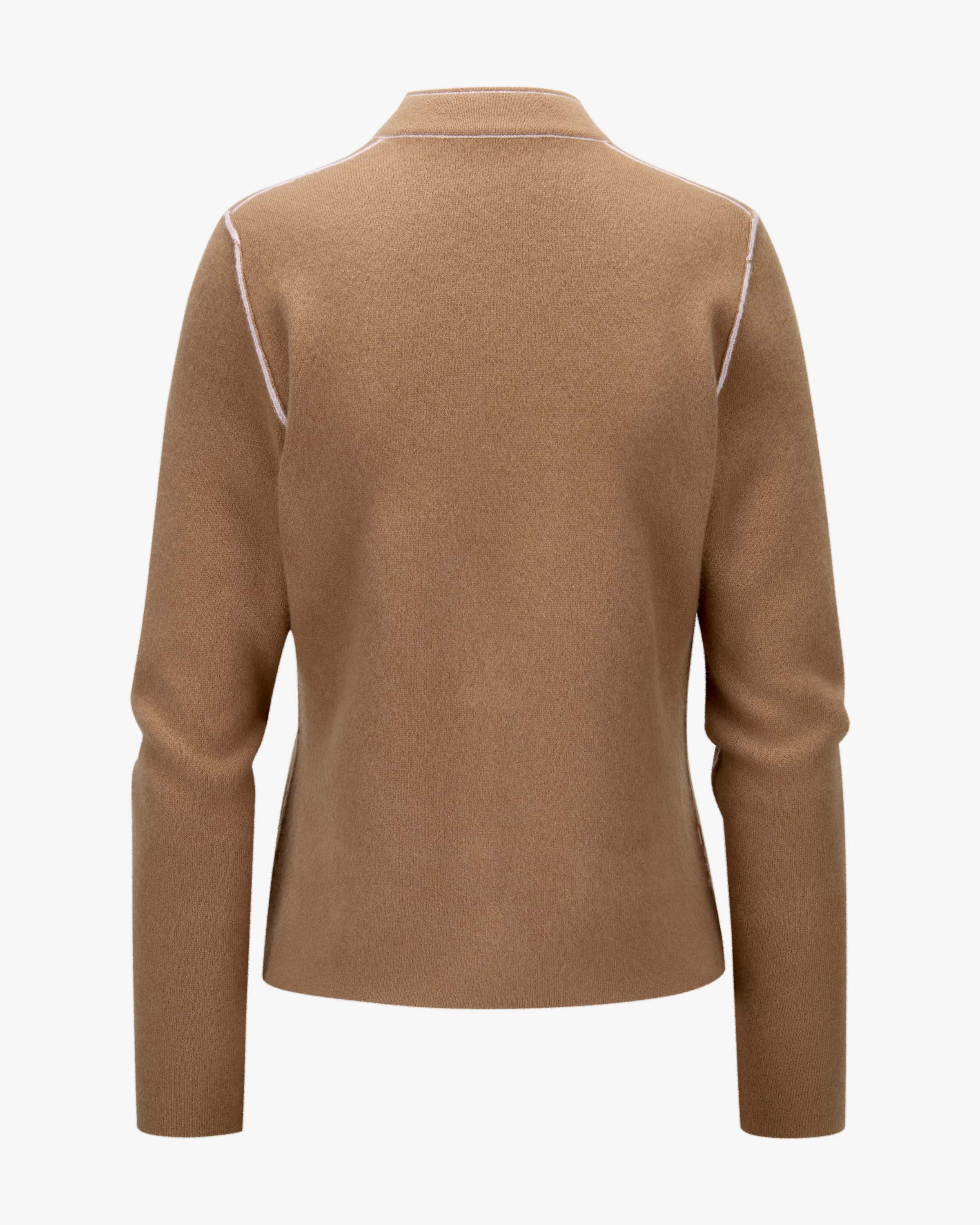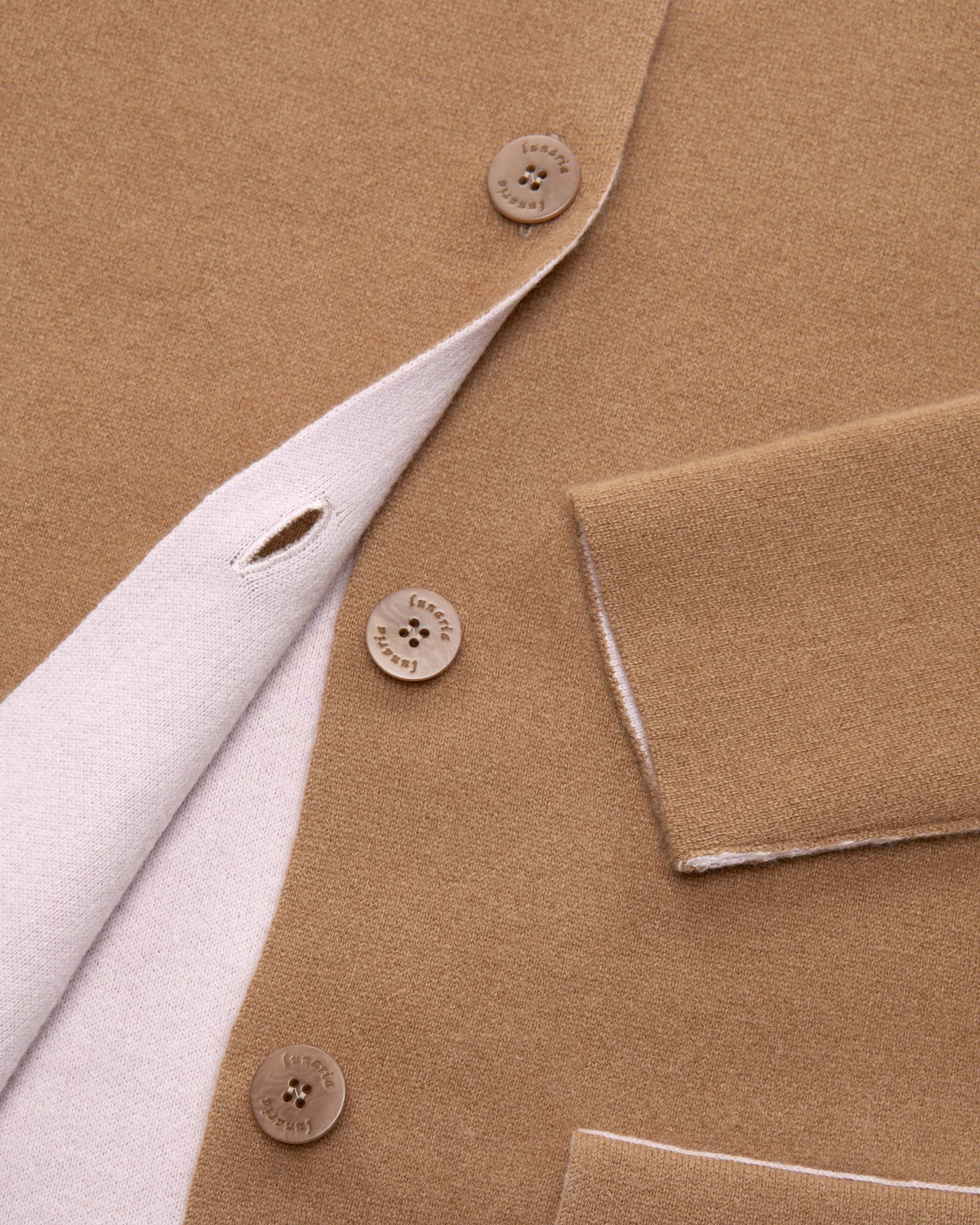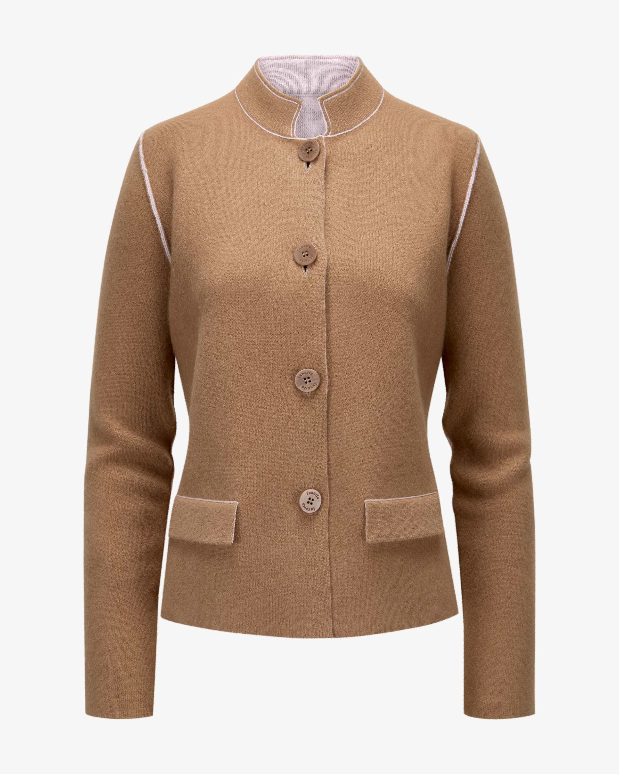 Reversible cashmere cardigan for women from Lunaria in camel and pink. Thanks to the